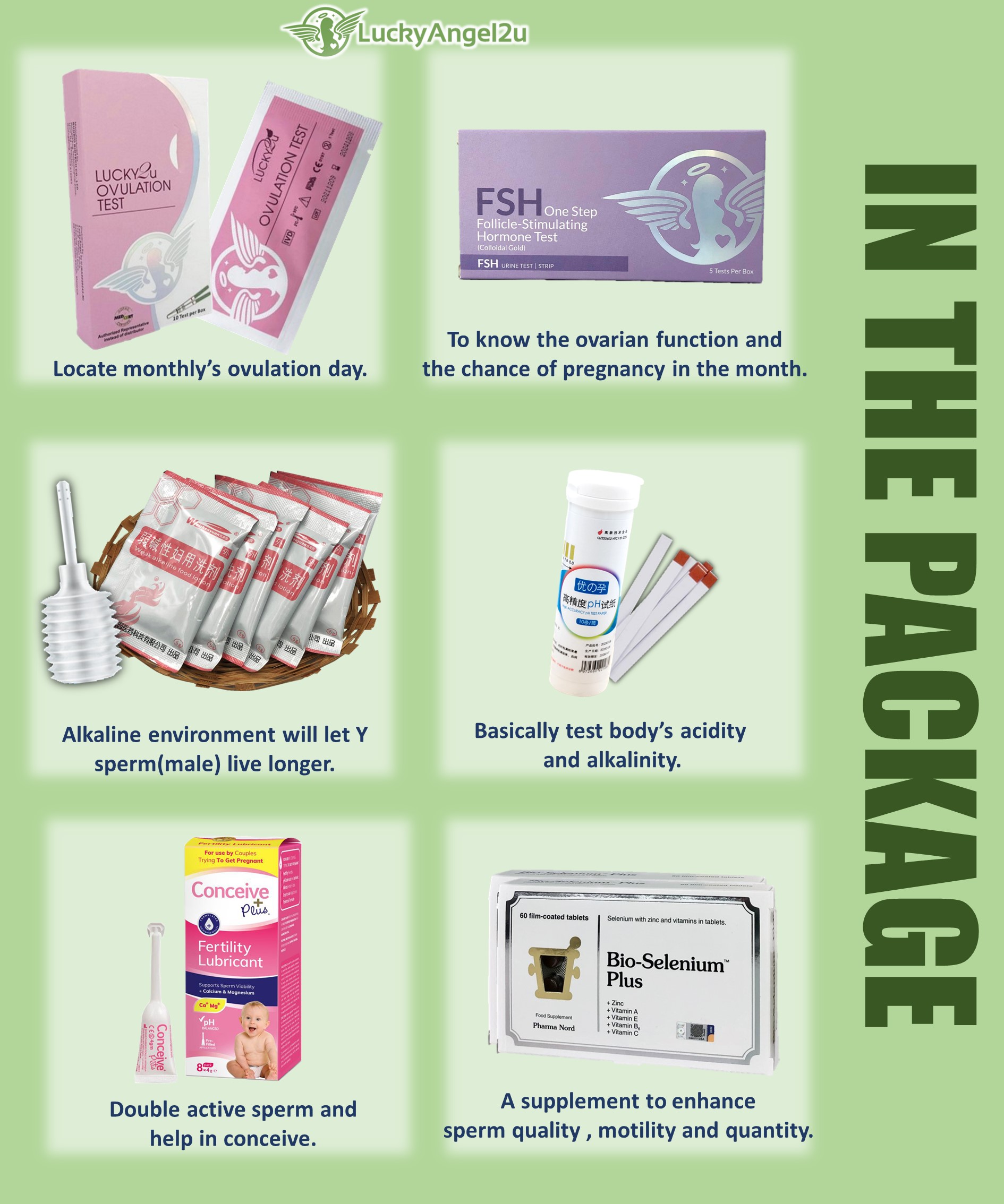 •Conceive Plus (4g Pre-filled Applicators x 4 pcs): A fertility-friendly lubricant designed to maintain ideal conditions for Y-sperm.