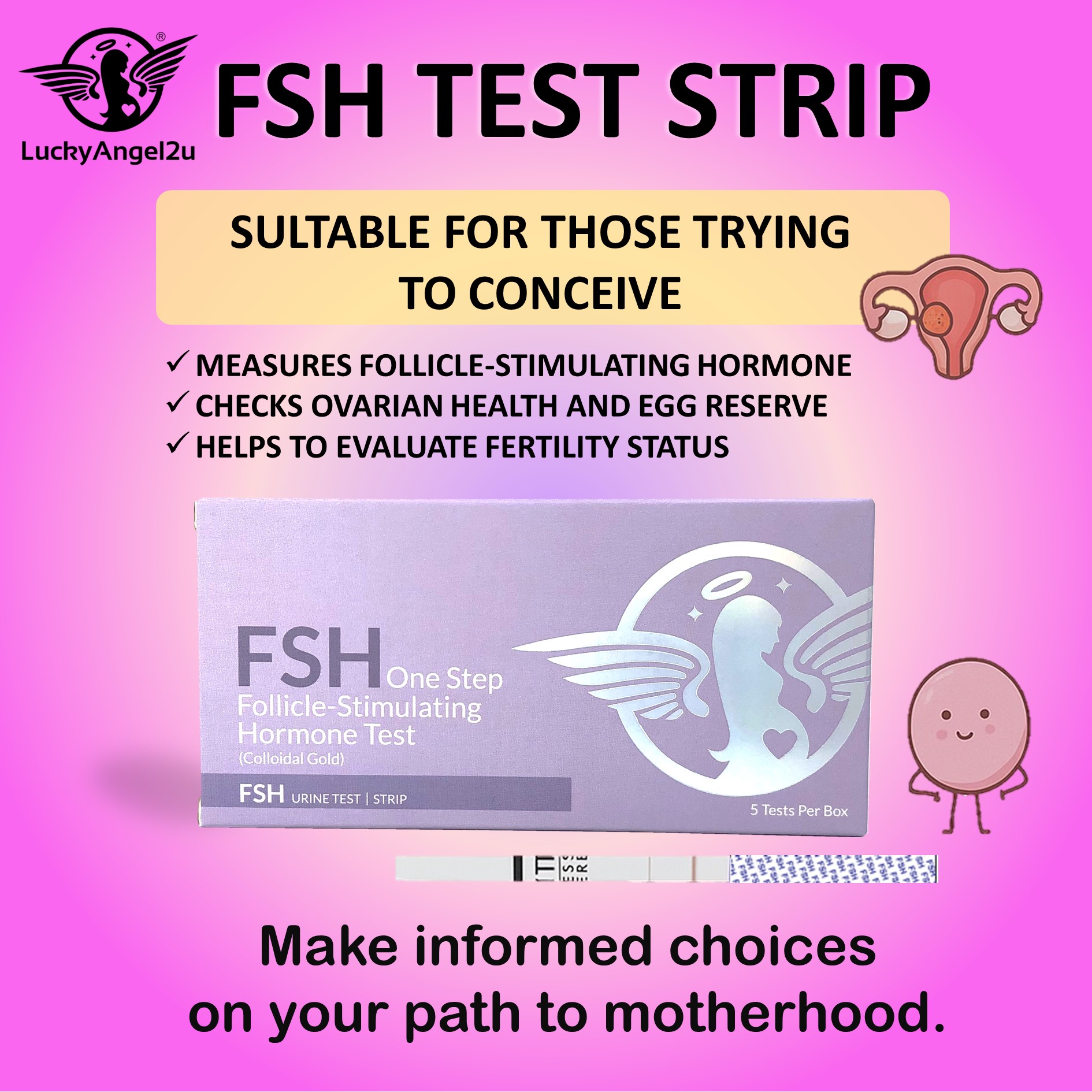 An FSH (Follicle-Stimulating Hormone) test strip is a simple, at-home diagnostic tool designed to measure the levels of FSH in urine. FSH is a hormone produced by the pituitary gland that plays a crucial role in regulating the menstrual cycle and fertility. The test is primarily used by women to understand their reproductive health and fertility status.