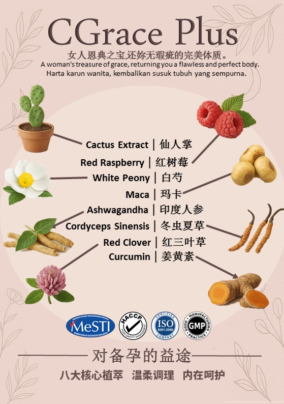 C Grace Plus consists of natural herbs that are useful especially for those who are planning to have children, period inconsistencies and all kinds of tumor.